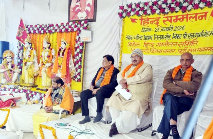 मेरठ, 27 जनवरी (दैनिक केसर खुशबू टाईम्स)। गीता आश्रम मंदिर, तिलक रोड पर हिंदू समाज के तत्वावधान में एक भव्य हिंदू सम्मेलन का आयोजन श्रद्धा एवं उत्साह के साथ संपन्न हुआ। कार्यक्रम का शुभारंभ प्रातः 10.30 बजे ध्वजारोहण के साथ किया गया, जिसमें उपस्थित श्रद्धालुओं ने राष्ट्र एवं धर्म के प्रति एकजुटता का संकल्प लिया।