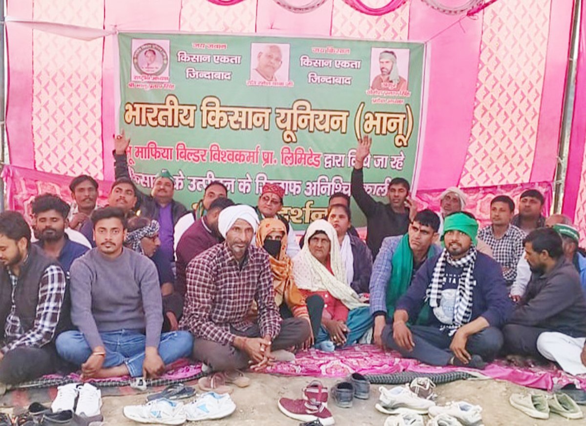 मेरठ १३ दिसंबर (दैनिक केसर खुशबू टाइम्स)। किसान यूनियन भानू से जुड़े किसान ईश्वरचंद के साथ अनेकों किसानों द्वारा विश्वकर्मा इंडस्ट्रियल एरिया में किया जाने वाला अनिश्चिकालीन अनशन आज पांचवे दिन भी जारी रहा। नौ दिसंबर से धरने पर मौजूद किसान ईश्वर चंद का कहना है कि बिल्डर उनकी २७०० गज जमीन पर कब्जा करना चाहते हैं। इसीलिए उत्पीड़न के क्रम में उनके खेतों में पानी जाने का मुख्य माध्यम सरकारी नाली पाट दी गई। और अब एक किलोमीटर दूर स्थित नाले से पानी लेकर सिंचाई के लिए परेशान किया जा रहा है। ईश्वरचंद का आरोप है कि बिल्डर उन्हें परेशान कर अपनी मंशा पूरी करना चाहता है। इसलिए चकरोड और नाली बंद की गई है। किसान यूनियन भानु के प्रवक्ता सुमित शास्त्री का कहना है कि बिल्डर कमल ठाकुर, संजय जैन और पिंकी गुप्ता किसान को दबाने में सफल नहीं हो पाएंगे। हम न्याय प्रक्रिया के तहत अपने साथी के साथ खड़े रहेंगे। किसान नेताओं का कहना है कि अगर ईश्वरचंद या अन्य किसान को कोई नुकसान होता है या किसी प्रकार का कोई हमला तो उसके लिए यह तीनों बिल्डर जिम्मेदार होंगे।