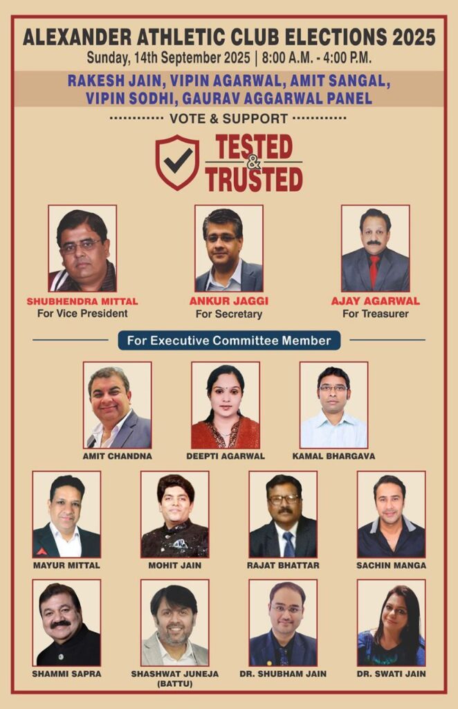 वहीं चुनाव में दूसरे पैनल टेस्टेड और ट्रस्टेड परिवार से उपाध्यक्ष पद पर शुभेंद्र मित्तल, सचिव पद पर अंकुर जग्गी व कोषाध्यक्ष पद पर अजय अग्रवाल चुनाव मैदान में है।
