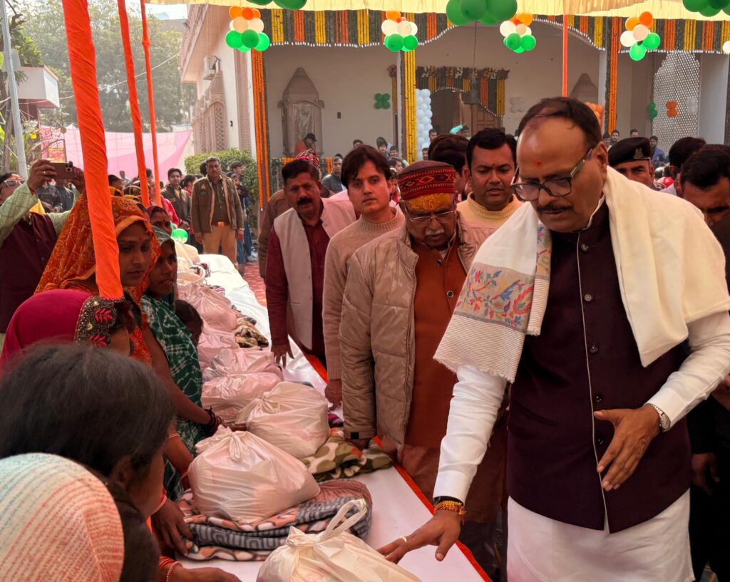 इस पावन अवसर पर उप मुख्यमंत्री माननीय श्री बृजेश पाठक जी, मेरठ कैंट विधायक अमित अग्रवाल एवं श्री वरुण अग्रवाल जी द्वारा जरूरतमंद एवं गरीब परिवारों को राशन सामग्री एवं कंबलों का वितरण भी किया गया, जिससे आयोजन में सेवा और मानवता का संदेश सशक्त रूप से प्रसारित हुआ।