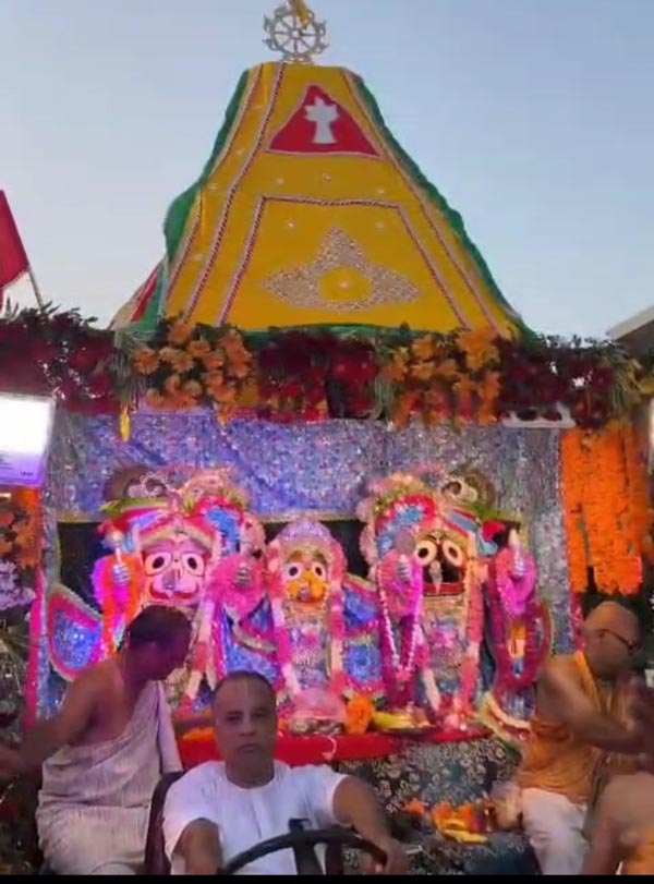 मेरठ 28 जून (प्र)। अपने शहर में पहली बार रूड़की रोड़ स्थित शीलकुंज और कैन्ट क्षेत्र में स्थित बिलेश्वर नाथ मंदिर दो जगह से भगवान जगन्नाथ जी की रथ यात्रा निकली। इस क्रम में सुपरटेक में आसीन इस्कॉन मंदिर के प्रयासों से शीलकुंज में निकली जगन्नाथ यात्रा के सूत्रधार बने रोटेरियन और समाजसेवी संगठनों से जुड़े ललित कौशिक ओम सेवा समिति के सहयोग से इस्कॉन की भव्य यात्रा गत दिवस सायं 6 बजे से शुरू होकर देर रात समाप्त हुई। शीलकुंज के मुख्य मार्गों पर निकली यात्रा में भगवान जगन्नाथ बलराम जी और सुभद्रा रानी एक शानदार रूप से सजे रथ पर सवार थी। यहां के स्थानीय निवासियों के अलावा शहर के विभिन्न कोनों से आये भक्तों ने भी भगवान जगन्नाथ जी के दर्शन कर धर्म लाभ उठाया। यात्रा का कई जगह स्वागत होने की बात भी बताई गई।