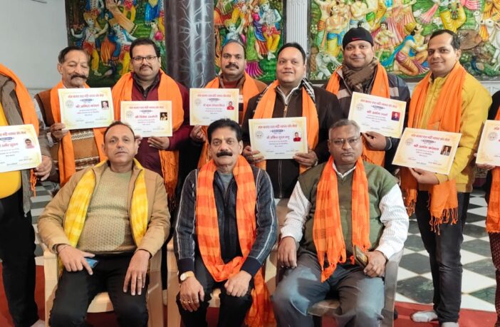 मेरठ 07 जनवरी (प्र)। मेरठ के प्रतिष्ठित बाजार सदर गंज बाजार दालमंडी व्यापार संघ के त्रिवार्षिक चुनाव श्री वामन भगवान मंदिर प्रांगण में संपन्न हुए जिसमें चुनाव अधिकारी की भूमिका राजेश सड़ाना व कमल किशोर गुप्ता ने निभाई चुनाव बीती रात सोमवार को मंदिर प्रांगण में संपन्न हुए जिसमें सभी पदाधिकारी का निर्वाचन निर्विरोध हुआ और साथ ही पूर्व में व्यापार संघ द्वारा किए गए सभी कार्यक्रमो को सफल बनाने पर बधाइयां प्रकट की गई ।