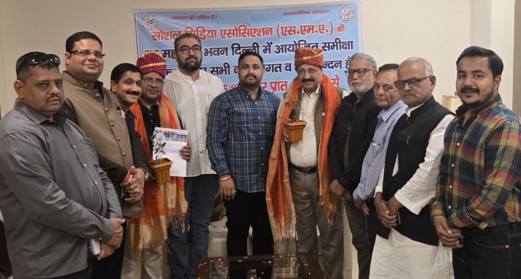 मेरठ 03 नवंबर (दैनिक केसर खुशबू टाइम्स)। धीरे धीरे राष्ट्रीय स्तर पर सदस्यों की बढ़ती संख्या के आधार पर मजबूती प्राप्त कर रहे अराजनीतिक संगठन सोशल मीडिया एसोसिएशन एसएमए द्वारा बीती 1 नवंबर को नई दिल्ली स्थित न्यू महाराष्ट्र भवन की चर्चा व समीक्षा कक्ष में नेशनल चेयरमैन सुनील डांग की अध्यक्षता और संस्थापक राष्ट्रीय महामंत्री अंकित बिश्नोई के संचालन में प्रातः 10 बजे से 11.30 बजे तक चली बैठक में संगठन के कार्यों की समीक्षा और प्रदेश अध्यक्षों की नियुक्ति पर गहन विचार विमर्श हुआ।