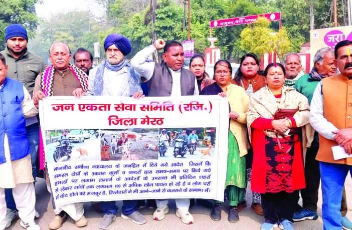मेरठ 04 फरवरी (दैनिक केसर खुशबू टाइम्स)। आवारा कुत्तों व बन्दरों द्वारा समय-समय पर किये गये हमलों पर लगाम लगाने के आदेशों के उपरान्त भी प्रतिदिन शहरों से लेकर गांवों तक लगभग 100 से अधिक लोग घायल हो रहे है व लोग घरों में कैद होने को मजबूर है, रिश्तेदारों ने भी आने-जाने से कतराने के सम्बन्ध में जन एकता सेवा समिति (रजि0) जिला मेरठ आपसे अनुरोध करती है कि वर्तमान में शहर से लेकर गांवों तक लगातार आवारा कुत्तों व बन्दरों का आतंक बढ़ता जा रहा है। बच्चों का घर से अकेले निकलना व स्कूल जाना मुश्किल हो गया है । दुपहिया वाहनों के पीछे भी दौड़ने पर लोग गिरकर कई बार चोटिल हो जाते है । इस प्रकार की घटनायें प्रतिदिन 100 से अधिक हो रही है जिसमें कई लोगों के कुत्तों के काटे जाने के कारण मृत्यु भी हो चुकी है। इसी कारणवश लोग घरों में कैद होने पर मजबूर हैं एवं कुत्तों के हमलों के कारण रिश्तेदार भी आने से कतराते है। क्योंकि नगर निगम व कैन्ट बोर्ड व अन्य निकायों द्वारा माननीय सर्वोच्च न्यायालय के आदेश का पालन गम्भीरता से नहीं किया जा रहा है, जिसके कारण शहर से लेकर गांवों आम लोगों में आवारा कुत्तों के कारण दहशत का माहौल व आक्रोश व्याप्त है।