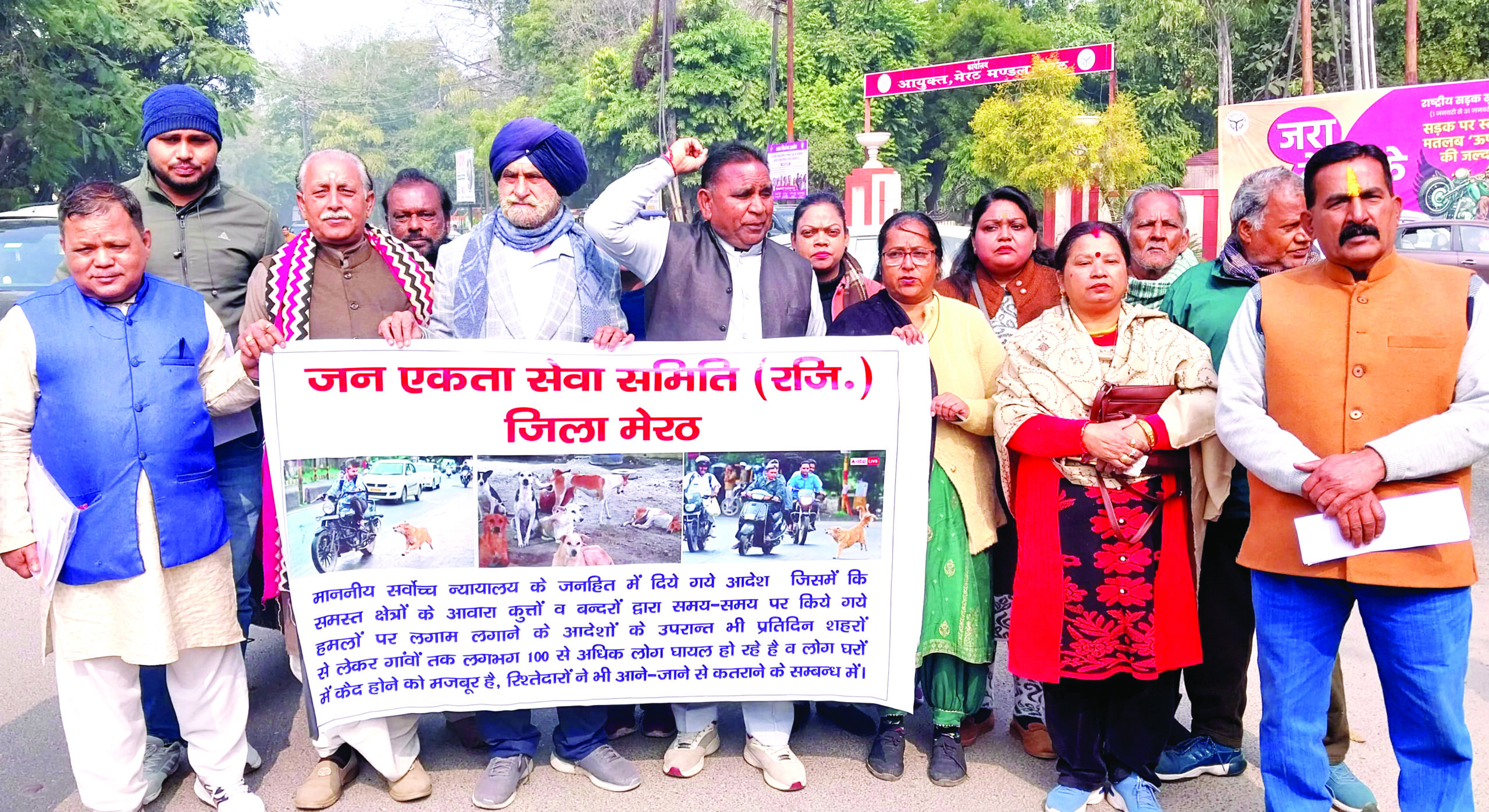 समिति आग्रह करती है कि ऊपर वर्णित सभी क्षेत्र की मुश्किलों व पूर्व में हुई समस्त घटनाओं का संज्ञान लेते हुए नगर निगम व कैन्ट बोर्ड एवं अन्य निकायों को आदेशित करके आवारा कुत्तों व बन्दरों के आतंक से समस्त मेरठ क्षेत्र की जनता को मुक्ति दिलाने की कृपा करें। ज्ञापन देने में सर्वश्री स0 मनजीत सिंह कोछड, राजेन्द्र सिंह यादव, दीपक बंसल, राजकुमार सौदे, राजेश पाण्डेय, सी0पी0 वाधवा, अशोक भारद्वाज, बबीता चौहान, ममता राव, वन्दना आहूजा, गीता ठाकुर, पुष्पलता, मीरा देवी, सरिता, निशा, शिल्पी चौहान, राजा, वसीम अब्बासी, पंकज वर्मा, टीकाराम, रूप किशोर पटेल विजय पटेल, मनोज पटेल राजपाल गोसाई कमलेश शर्मा, विक्रम, राज कुमार आदि उपस्थित रहे।