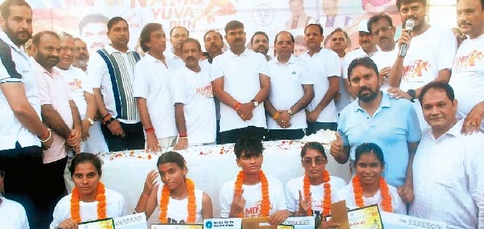 कैलाश प्रकाश स्टेडियम से धर्मपाल सिंह ने नमो युवा रन मैराथन को हरी झंडी दिखाकर रवाना किया। युवाओं में काफी उत्साह दिखा। हजारों युवाओं को नशामुक्ति अभियान को लेकर जागरूकता का संकल्प दिलाया गया। बड़ी संख्या में युवतियां भी शामिल रहीं। मैराथन में युवाओं के साथ बड़े, बुजुर्ग, महिलाएं, युवतियां, बच्चे सभी दौड़े। विजेता खिलाड़ियों को सर्टिफिकेट देकर सम्मानित किया गया। क्षेत्रीय उपाध्यक्ष का दावा है मैराथन में 15 हजार से अधिक प्रतिभागी शामिल रहे।