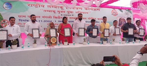 किठौर /माछरा 15 नवंबर (प्र)। राष्ट्रीय तम्बाकू नियंत्रण कार्यक्रम के तम्बाकू मुक्त युवा अभियान के तहत गुरुवार को जिला प्रशासन ने नंगली किठौर को प्रदेश की प्रथम तम्बाकू मुक्त ग्राम पंचायत घोषित की। अब प्रशासन नंगली को प्रदेश की स्वस्थ ग्राम पंचायत का दर्जा दिलाकर केंद्र सरकार से पुरस्कृत कराने का प्रयास करेगा।