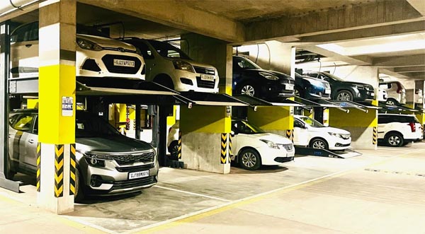 - वर्टिकल स्टैक पार्किंग : कारों को एक के ऊपर एक लिफ्ट या रैंप का उपयोग करके रखा जाता है। यह तरीका ऊंचाई को उपयोग करता है। जैसे मल्टीलेवल पार्किंग गैरेज।