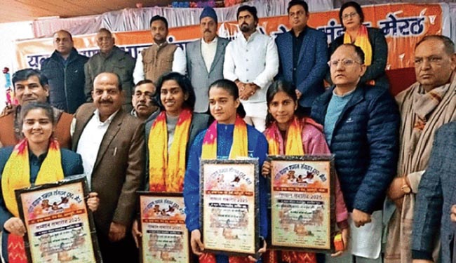 अधिवक्ता हरिओम शर्मा, शिक्षक डा. वीके गौतम, डा. देवेश शर्मा, डा. शशांक मिश्रा, चिकित्सक डा. सौरभ तिवारी, दैनिक जागरण मेरठ के संपादकीय प्रभारी रविप्रकाश तिवारी व पत्रकार रवि शर्मा को सम्मानित किया। युवाओं में प्रांजल शर्मा, अनमोल वशिष्ठ, आदित्य वस्त, अवनि कौशिक, अहाना शर्मा को सम्मानित किया गया। कुलदीप शर्मा, शैलेंद्र शर्मा, सौरभ दिवाकर शर्मा, गिरीश भारद्वाज मौजूद रहे।