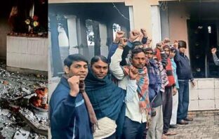 शिवलिंग व शिव परिवार की मूर्तियां खंडित कर मंदिर में लगाई आग