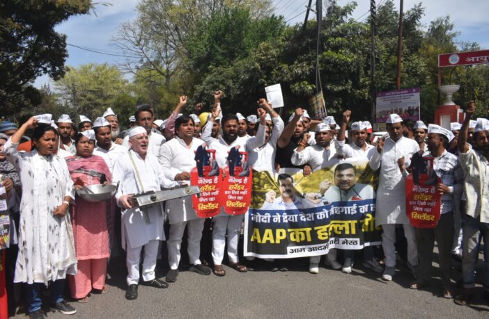 मेरठ 14 मार्च (प्र)। आम आदमी पार्टी (आप) ने बढ़ती महंगाई और रसोई गैस सिलेंडर की कीमतों में वृद्धि के विरोध में डीएम कार्यालय पर प्रदर्शन किया। पार्टी ने आरोप लगाया कि घरेलू और व्यावसायिक गैस सिलेंडरों की कीमतों में बढ़ोतरी से आम जनता और छोटे व्यापारी गंभीर संकट का सामना कर रहे हैं।