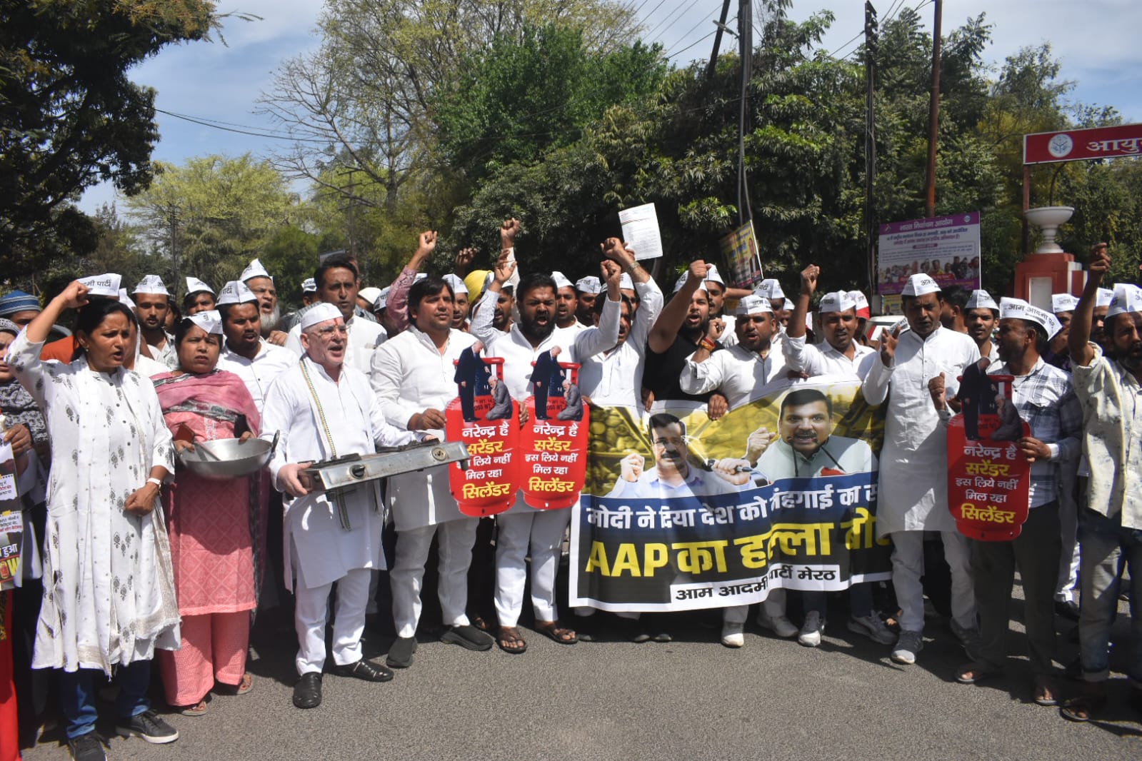 आम आदमी पार्टी ने बढ़ती महंगाई और सिलेंडर की कीमतों के विरोध में डीएम कार्यालय पर किया प्रदर्शन