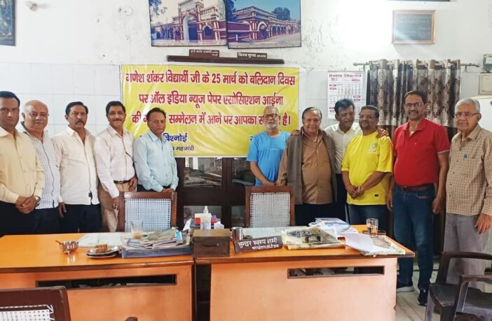 मेरठ, 26 मार्च (दैनिक केसर खुशबू टाईम्स)। पत्रकार संपादकों के प्रेरणास्रोत मार्गदर्शक क्रांतिकारी रहे गणेश शंकर विद्यार्थी जी के बलिदान दिवस के उपलक्ष में आज ऑल इंडिया न्यूज पेपर एसोसिएशन आईना के द्वारा एक गोष्ठी का आयोजन किया गया। 3 बजे शुरू होकर लगभग एक घंटे चली गोष्ठी की अध्यक्षता लालारामानुज दयाल वैश्य बाल सदन के सचिव एडवोकेट हर्ष वर्धन बिट्टन तथा संचालन पुनीत सिंघल संपादक सिंघल टाइम्स द्वारा किया गया। इस गारिमापूर्ण गोष्ठी में सभी वक्ताओं ने गणेश शंकर विद्यार्थी के दिखाये मार्ग पर चलने समाचार पत्र संपादकों पत्रकारों तथा संचालकों को एक जुट कर इस चौथे स्तंभ की गरिमा जो गणेश शंकर विद्यार्थी जी आदि द्वारा कायम की गई थी उसे बनाये रखने और गणेश शंकर जी द्वारा दिये गये बलिदान की भावना को आगे बढ़ाने पर जोर दिया गया।