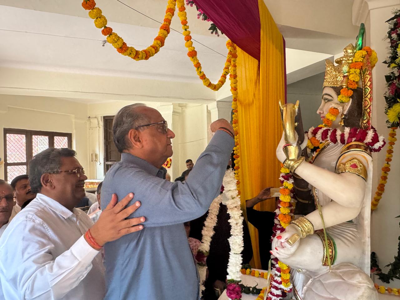 मेरठ 27 अक्टूबर (दैनिक केसर खुशबू टाइम्स)। मेरठ कालेज की लाईब्रेरी के सेन्ट्रल हाल में बीते दिवस शिक्षा समाजसेवा और राजनीति के क्षेत्र में महत्वपूर्ण भूमिका निभाते रहे स्वर्गीय सेठ दयानंद गुप्ता जी की धर्मपत्नी श्रीमति राजबाला गुप्ता और उनके पुत्र अजय गुप्ता ने प्रबंधन समिति के अध्यक्ष डा0 ओपी अग्रवाल मंत्री विवेक गर्ग और प्राचार्य युद्धवीर सिंह के सहयोग से विधि विधान के साथ धार्मिक मंत्र उच्चारण के बीच ज्ञान की देवी मां सरस्वती की स्थापित की गई प्रतिमा का अनावरण किया गया। गत रविवार 26 अक्टूबर को मेरठ कालेज में सेन्ट्रल हाल में 11.30 बजे एकत्रित हुए शिक्षाविद प्रोफेसर प्रबंधन समिति के सदस्यों व नानकचंद डिग्री कालेज के प्रबंधन समिति से संबंध पूर्व विधायक राजेन्द्र शर्मा व अमित शर्मा आदि की मौजूदगी में हुए अनावरण उपरांत श्रीमति राजबाला गुप्ता एवं श्री अजय गुप्ता ने सभी का इसके लिए आभार व्यक्त किया कि यहां आने वाले छात्रों को मां सरस्वती की कृपा से उच्चस्तरीय ज्ञान और समाज के प्रति निष्ठा से कार्य करने की प्रेरणा मिलेगी। इस अवसर पर प्रबंधन समिति के पंकज मित्तल सुशील कंसल रवि कुमार बिश्नोई जयवीर सिंह संजीवेश्वर त्यागी एसपी देशवाल के अतिरिक्त धार्मिक आयोजन विधि विधान से संपन्न कराने वाले प्रोफेसर वाचस्पति मिश्रा विनय कुमार पंकज स्वामी डा0 संदीप डा0 कपिल डा0 नरेन्द्र प्रताप डा0 पूरन सिंह आदि विशेष रूप से मौजूद रहे। चित्र में मां सरस्वती की प्रतिमा का अनावरण करते श्रीमति राजबाला गुप्ता अजय गुप्ता डा0 ओमप्रकाश अग्रवाल विवेक गर्ग प्राचार्य युद्धवीर सिंह रवि कुमार बिश्नोई तथा प्रो0 वाचस्पति मिश्रा नजर आ रहे है।