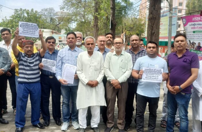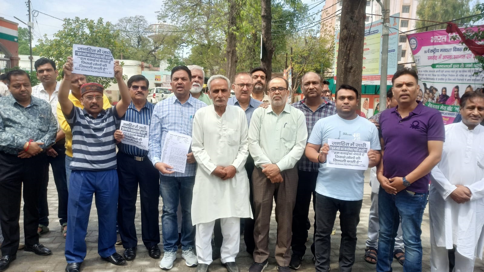 कलेक्ट्रेट में होलसेलर एण्ड रिटेलर केमिस्ट एसोसिएशन का प्रदर्शन